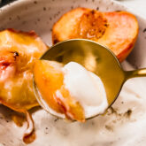 These peaches in the air fryer are perfectly caramelized and delicious!