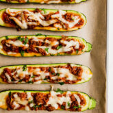 Use this marinara sauce for AIP.Save the inside of the zucchini flesh to add to soups, sauces, etc!All nutritional information are estimations and will vary.