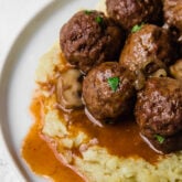 Once the sauce thickens, add the meatballs back to the pan. Spoon the sauce over the meatballs and simmer for a few minutes to allow to reheat.