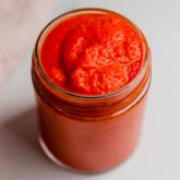 Carefully reserve 1/3 cup of the water used to steam the carrots and beets. This helps retain the red color in the ketchup. Set aside.